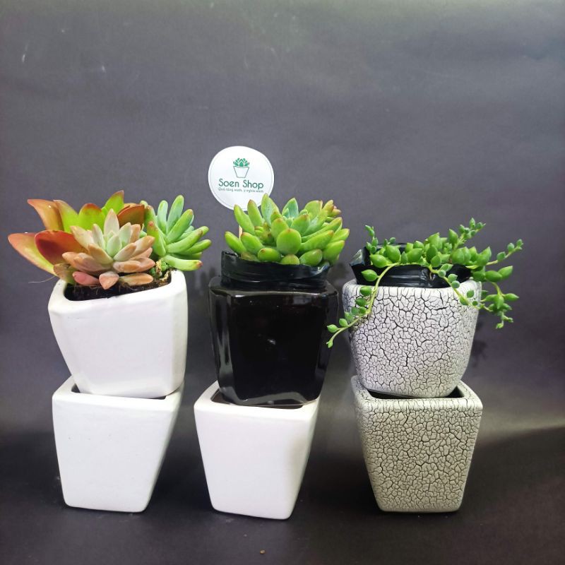 Giới thiệu Chậu sứ trồng sen đá, xương rồng - chậu vuông vát mini