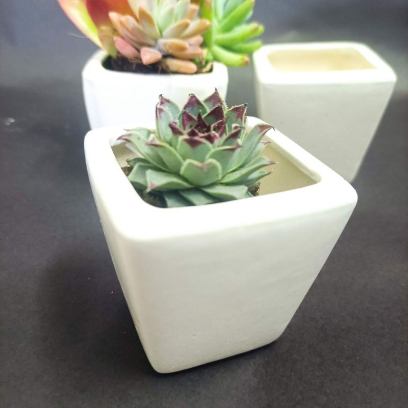 Chậu sứ trồng sen đá, xương rồng - chậu vuông vát mini