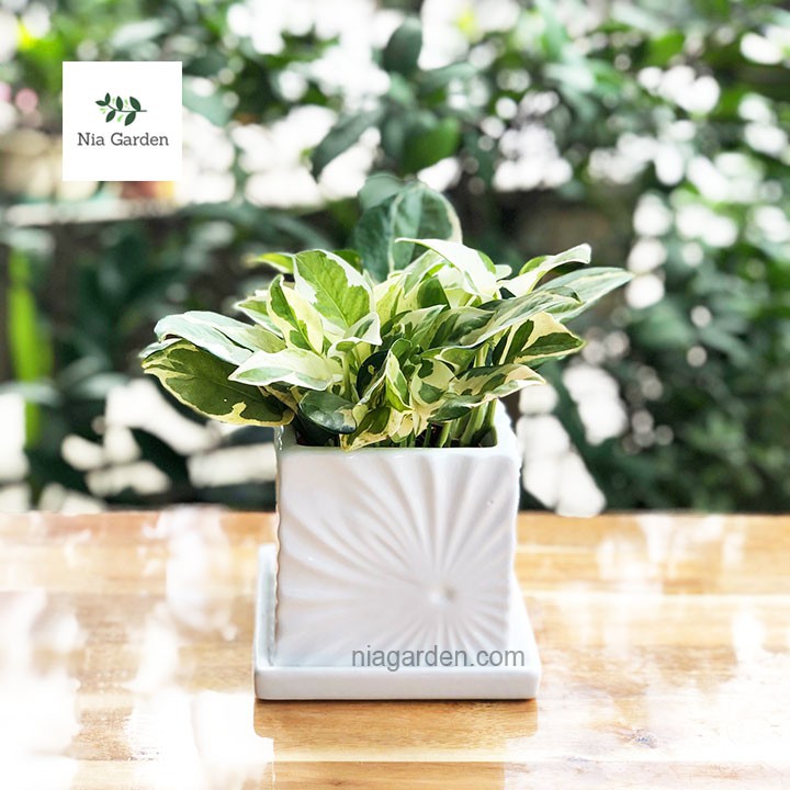 Giới thiệu Chậu sứ vuông trồng cây để bàn, sen đá - CT