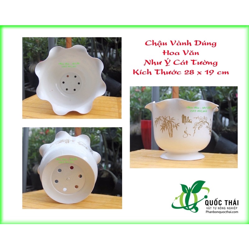 Chậu Tai Bèo Như Ý Cát Tường,kích thước 28x19cm,màu trắng nhũ vàng