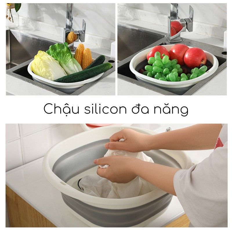 Nhà cửa & Đời sống > Dụng cụ chăm sóc nhà cửa > Chậu, xô & gáo nước || Chậu tắm cho bé, thau gấp gọn, chậu ngâm chân silicon đa năng, kích thước vừa + lớnCòn hàng