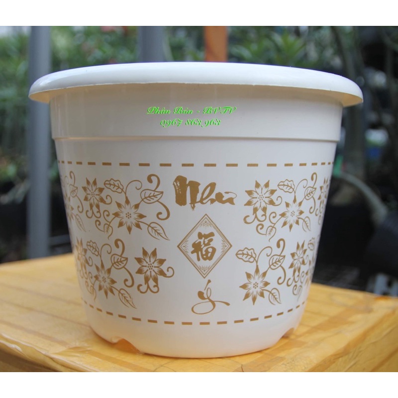 Chậu Thakico Tròn Nhũ Vàng 28×21 cm,Như Ý Cát Tường