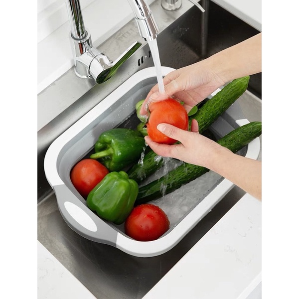 Chậu thau gấp gọn silicon kiêm thớt tiện dụng