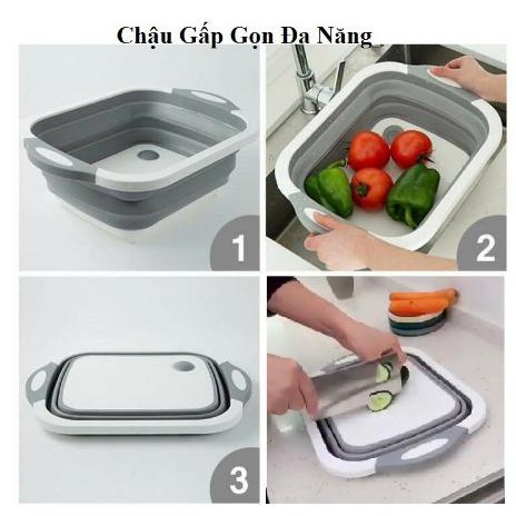 Chậu thau gấp gọn silicon kiêm thớt tiện dụng
