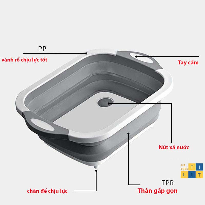 Chậu thớt đa năng gấp gọn tiện dụng 3 trong 1 kích thước 30 x 40cm- Kích thước khi gấp gọn: 40 x 30 x 3 cm
