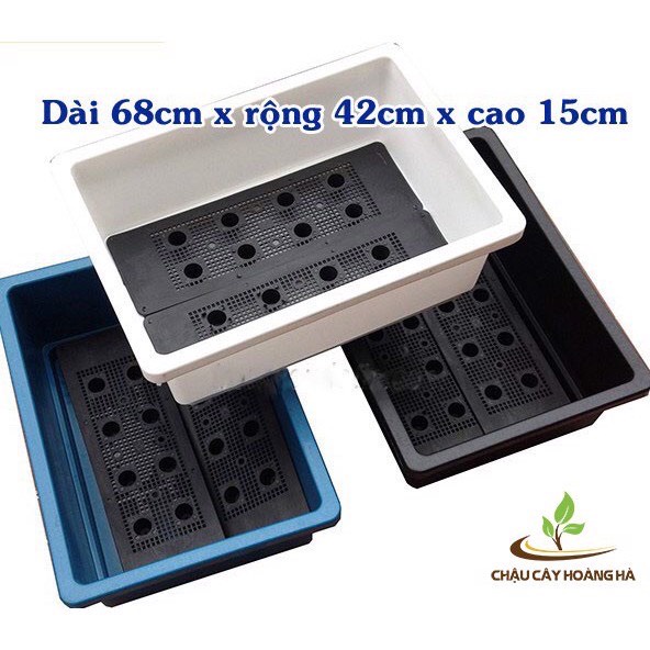 Khay trồng/chậu trồng thông minh là khay nhựa chuyên dụng để trồng rau mầm, rau ăn lá sạch tại nhà.Kích thước loại lớn : dài 68* rộng 42* cao 16cm.47*34*16 (dài x rộng x cao)