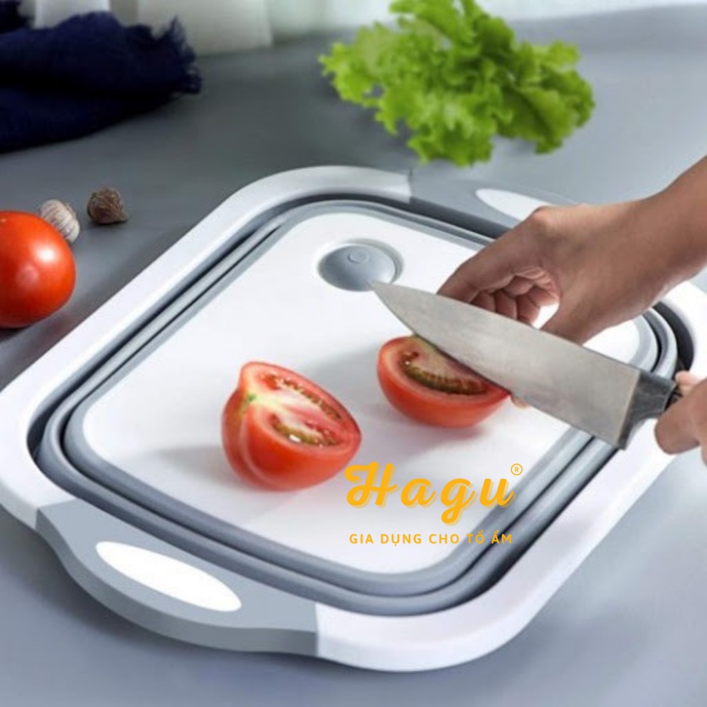 + THỚT: Khi gập lại dùng làm thớt để thái rau củ quả, thịt, cá.Thiết kế chống trượt được đặt trên bề mặt, thuận tiện để cắt thực phẩm mà không bị trượt.