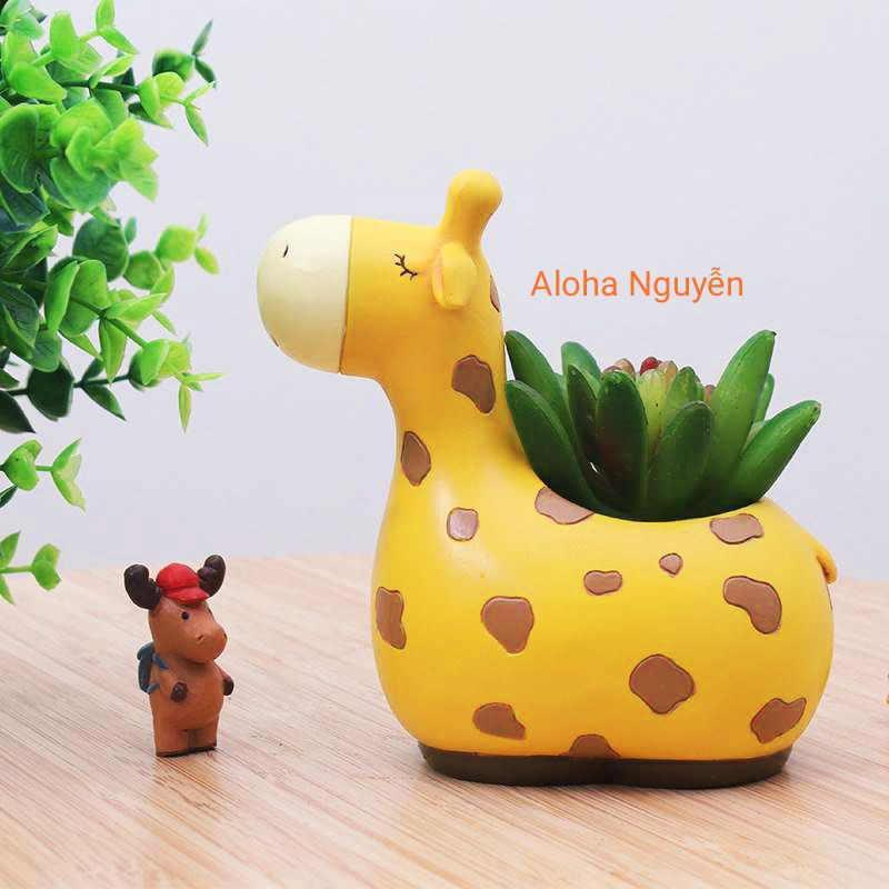 Chậu thú hươu cao cổ siêu dể thương ,chậu dùng trồng sen đá cây cảnh để bàn trang trí .