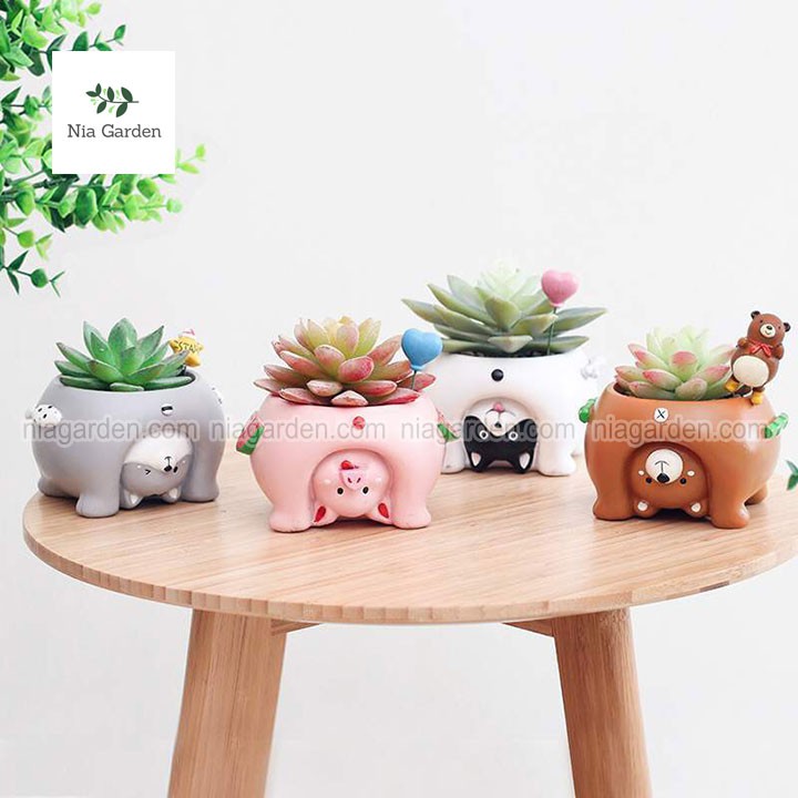 Nhà cửa & Đời sống > Làm vườn > Chậu cây || Chậu thú nhựa lộn ngược trồng sen đá xương rồng mini gấu heo chó Nia Garden N4Còn hàng