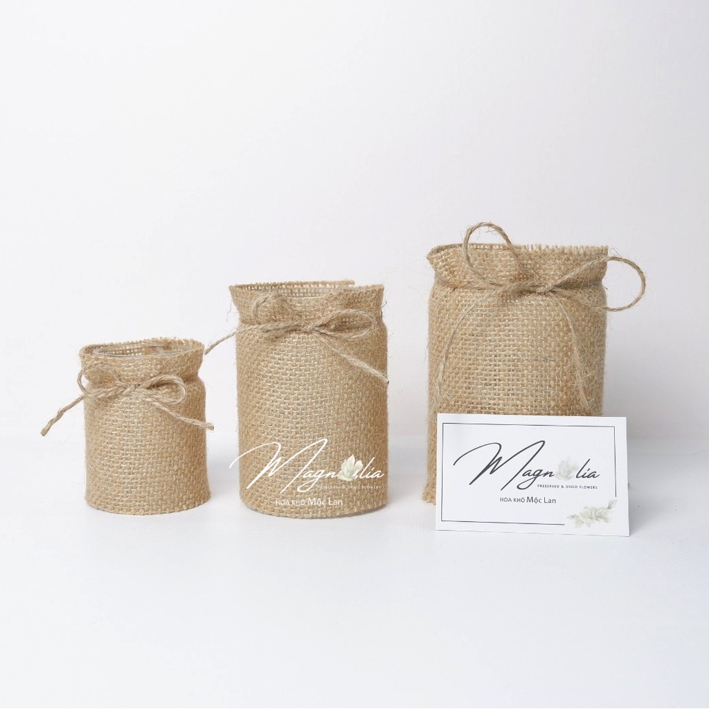 ♛♛♛Lọ hoa, lọ cắm hoa trang trí vải bố thắt nơ♛♛♛Size 1: cao ~7cm, miệng rộng ~3,7 cm