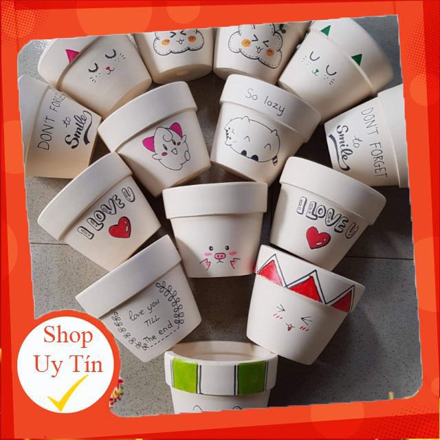 Nhà cửa & Đời sống > Làm vườn > Chậu cây || Chậu trắng nhỏ vẽ đơn giản 7x7cmCòn hàng
