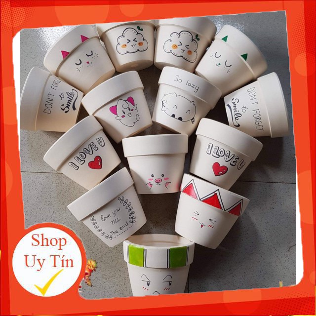 Nhà cửa & Đời sống > Làm vườn > Chậu cây || Chậu trắng trung vẽ đơn giản 9x9cmCòn hàng