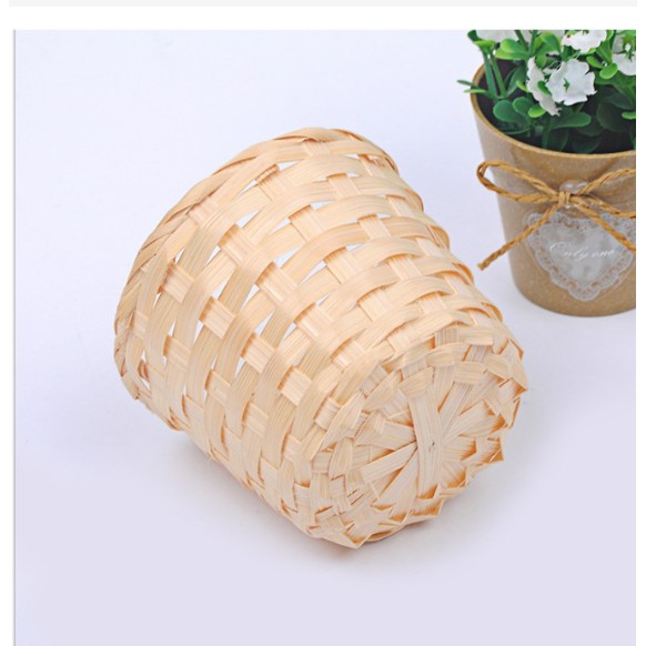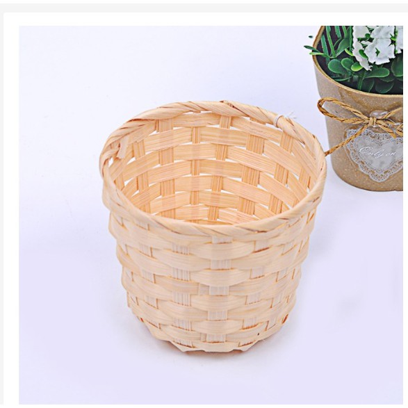 Chậu tre đan nhí cắm hoa, đựng phụ kiện dễ thương