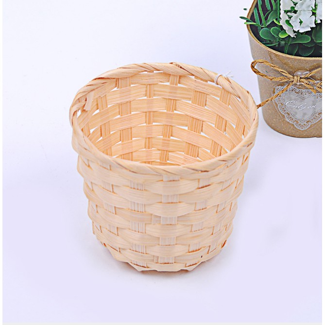Chậu tre đan nhí cắm hoa, đựng phụ kiện dễ thương