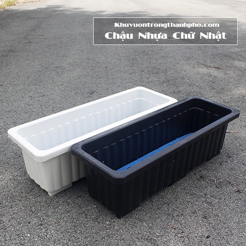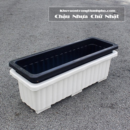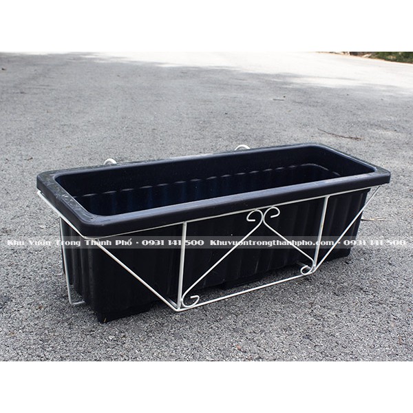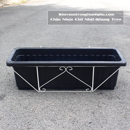 Chậu chữ nhật kèm khung treo có kích thước chậu : 63x22.5x19 . màu: Chậu Đen + Khung Trắng