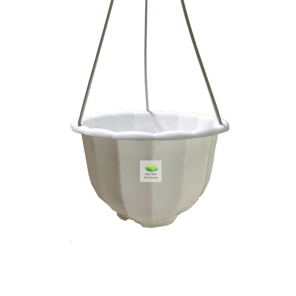 Chậu treo bí kích thước 22x14cm, thích hợp trồng hoa treo ban côngChậu bao gồm dây treo bằng nhựa