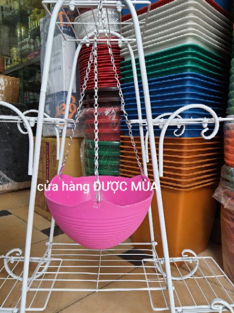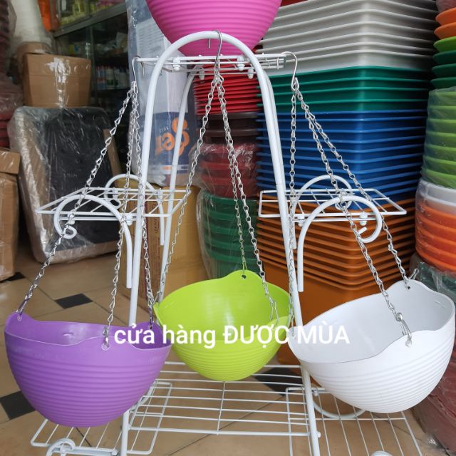 Mẫu chậu treo mới hiện nay đang được mọi người ưa chuộng.Chất nhựa nguyên sinh cực kỳ bền chắc, màu sắc tươi sáng, trang nhã phù hợp nhiều loại cây trồng trang trí.