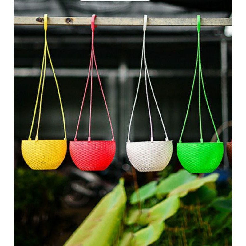 Chậu bí có màu trắng, xanh lá cây. Chậu giả mây màu trắng, vàng, xanh. Chậu vuông có màu trắng. Nếu khách ko yêu cầu màu, shop xin giao màu ngẫu nhiên. Chậu nào cũng kèm dây treo nhen khách