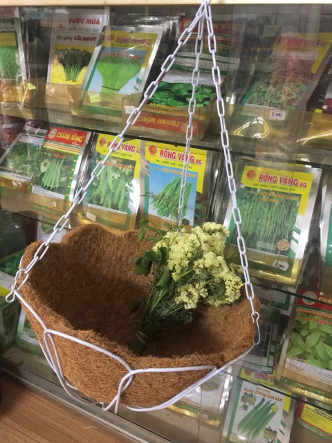 Bên trong lót sơ dừa k sợ đất rớt ra ngoài, còn có tác dụng giữ ẩm cho cây rất tốt. (Nếu sơ dừa mục ta có thể thay được).