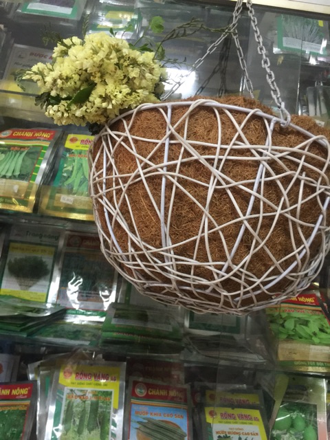 Bên trong lót sơ dừa k sợ đất rớt ra ngoài, còn có tác dụng giữ ẩm cho cây rất tốt. (Nếu sơ dừa mục ta có thể thay được).