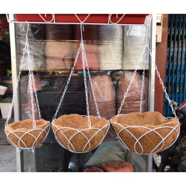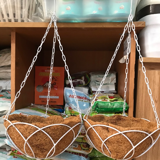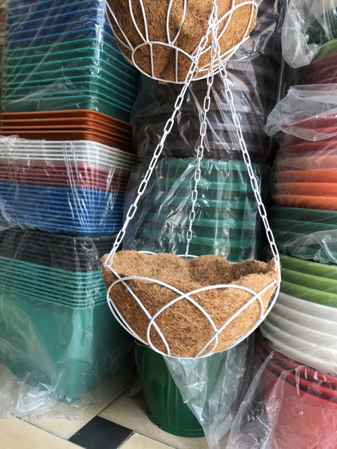 Chậu treo lót sơ dừa miếngDây treo bằng xích sắc chắc chắn