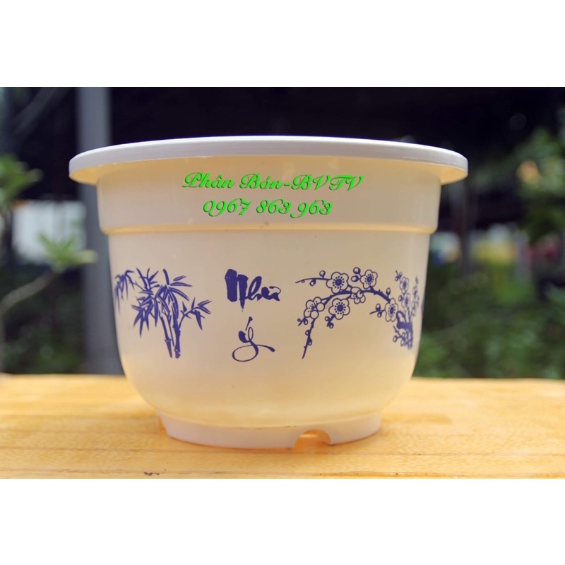 Nhà cửa & Đời sống > Làm vườn > Chậu cây || Chậu Tròn Như Ý Cát Tường 22 x 15 cm,màu trắng bông xanhCòn hàng