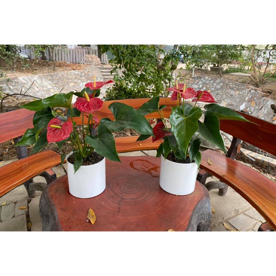Chậu được làm bằng chất liệu nhựa trơn bóng, cứng cáp phù hợp trồng các loại cây cảnh để bàn