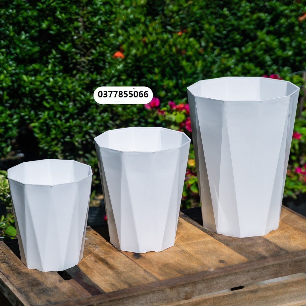 ✨ Chậu nhựa trồng cây cảnh màu trắng, chậu vuông, lục giác kim cương, ngũ giác hoa văn đẹp mắt size từ 15-35cmBạn cần một chiếc chậu giá rẻ, bền đẹp mắt trồng được mọi loại cây, chậu màu trắng là sự lựa chọn thích hợp nhất cho chiếc ban công hoặc cửa số nhà bạn đó.