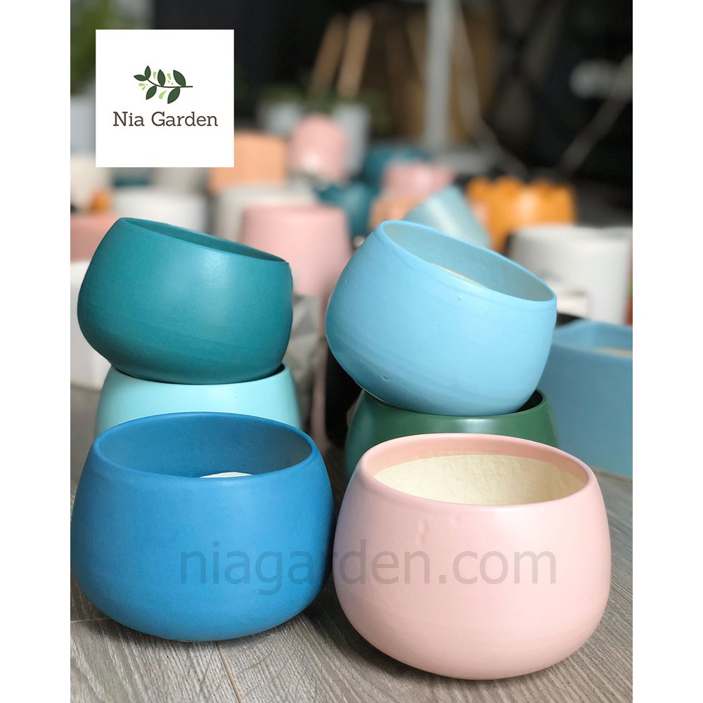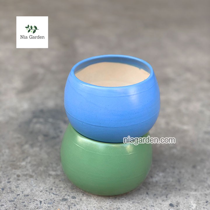 • Chất liệu: chậu gốm được phủ một lớp men sứ bên ngoài bóng mờ và sờ mát tay
