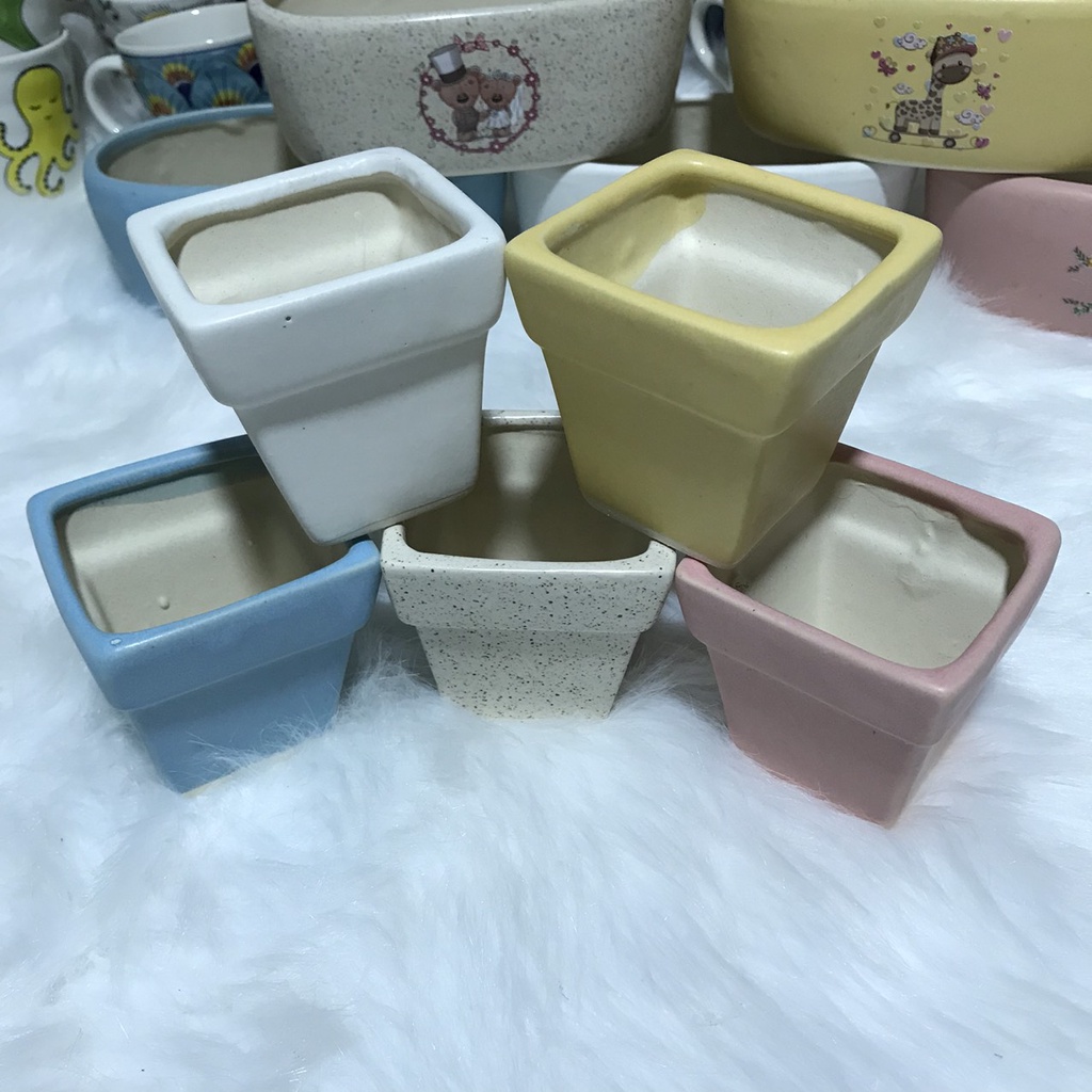 Chậu trồng cây cảnh - Sen Đá - Xương Rồng - Hoa nhỏ - Kiểu xô Vuông 7,5*7,5*4,5cm