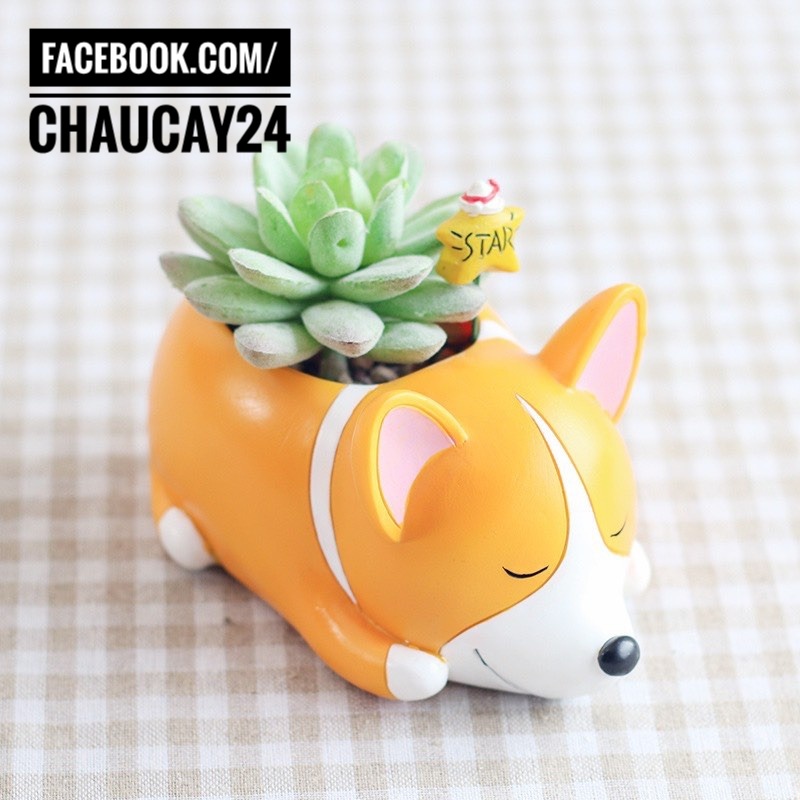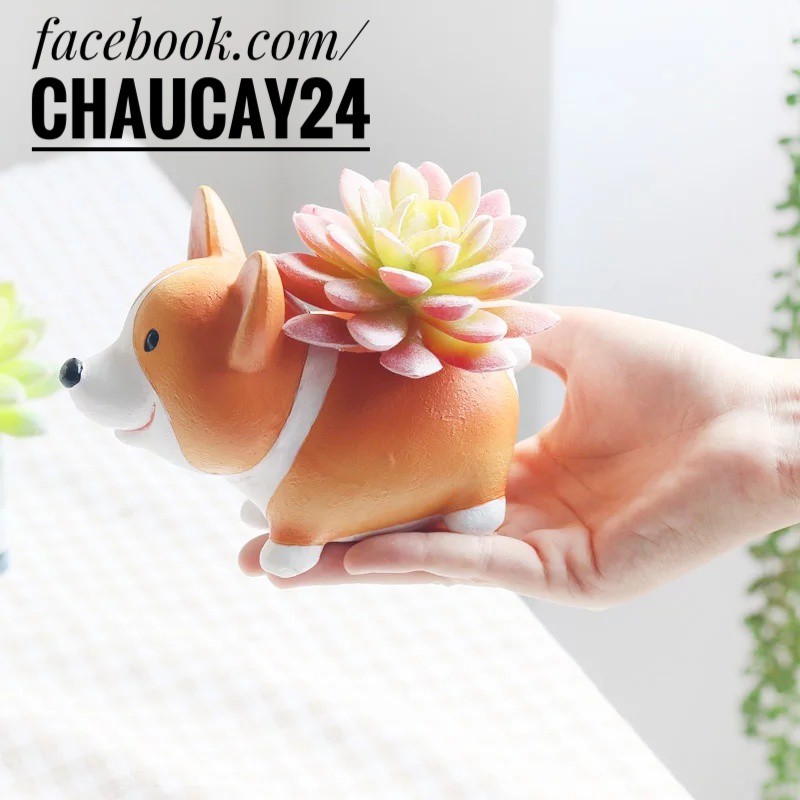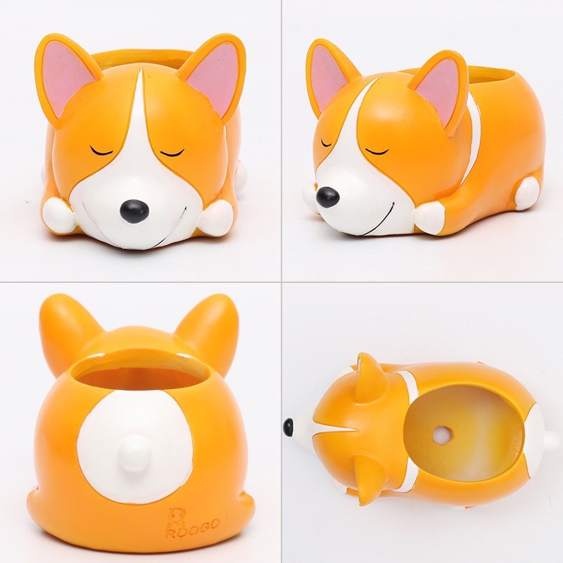 Chậu Trồng Cây Cảnh Trang Trí Để Bàn, sen đá, xương rồng hình chú chó corgi