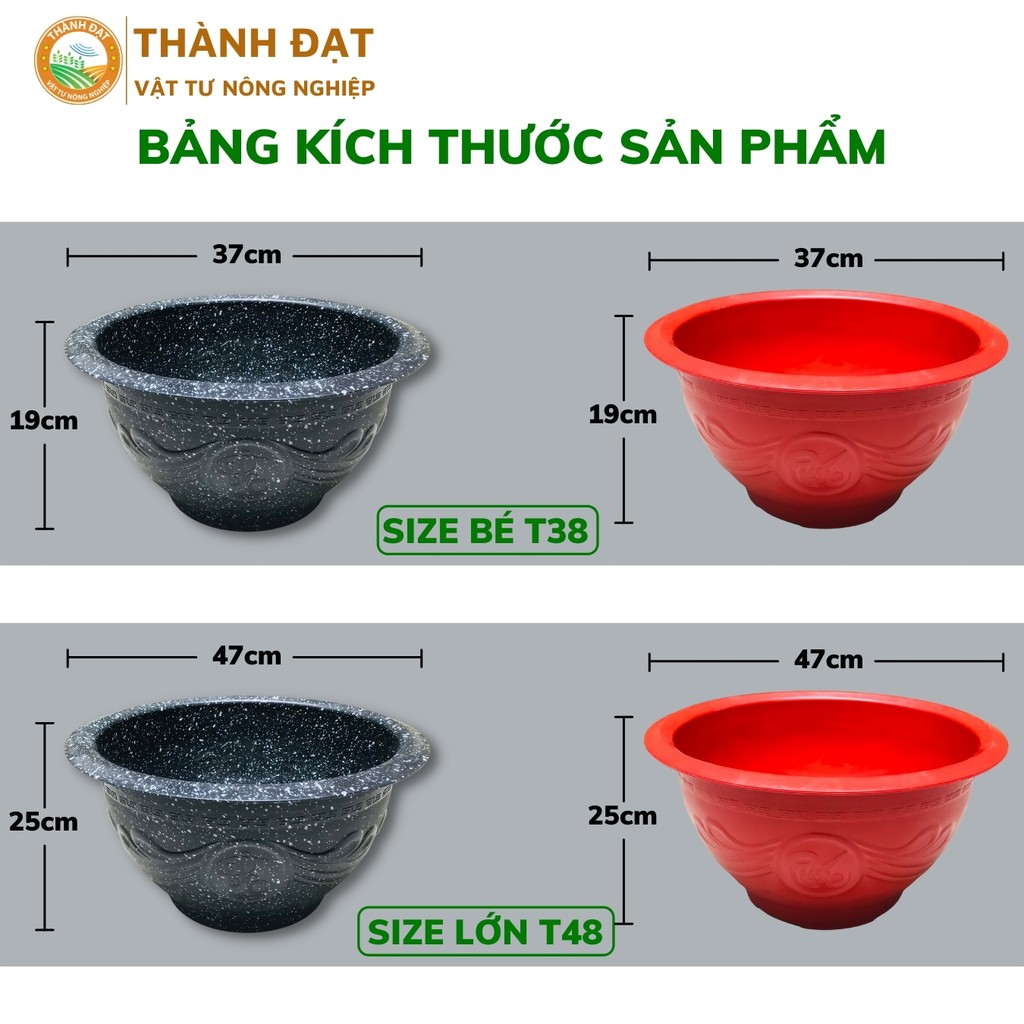 Giới thiệu Chậu trồng cây, chậu nhựa trồng cây giả đá in hoa văn phúc lộc thọ 2 màu đen, đỏ