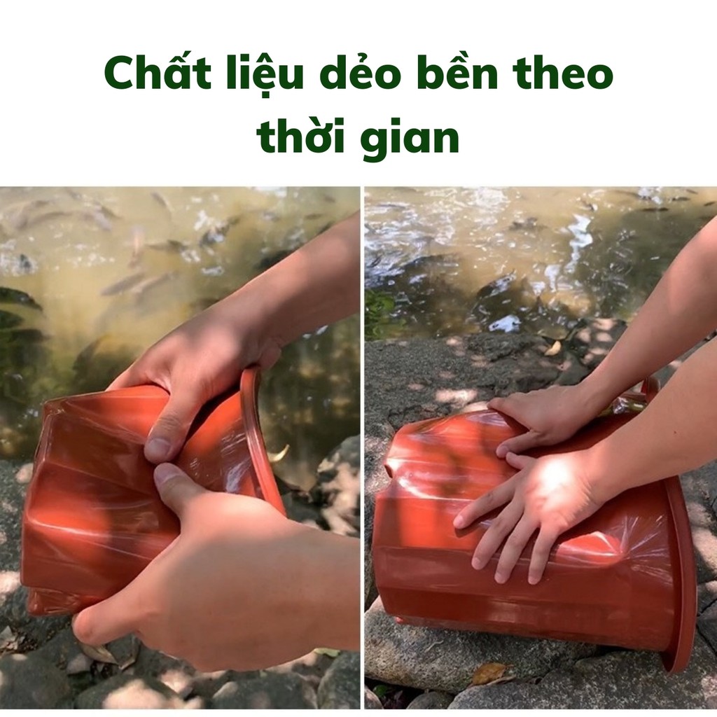 Chậu nhựa mềm tròn màu nâu nhiều kích thước thích hợp ươm cây từ nhỏ đến lớn, dễ thay chậuChất liệu nhựa dày dặn, không dễ vỡ, giòn.