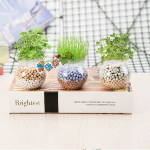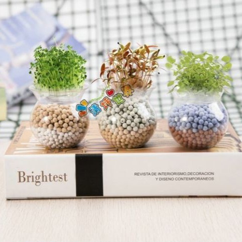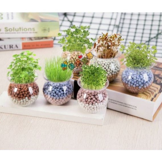 Giới thiệu Chậu trồng cây cỏ thủy canh nhiều loại để bàn, chậu cỏ tự trồng, chậu trồng cây cỏ hình tròn phối 2 màu đất nung đẹp
