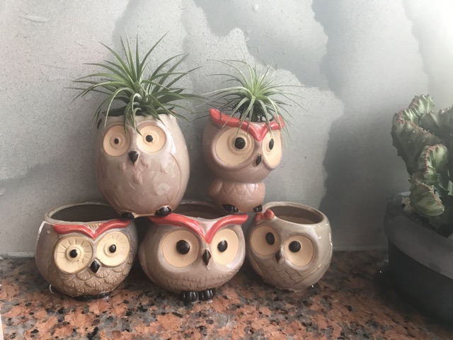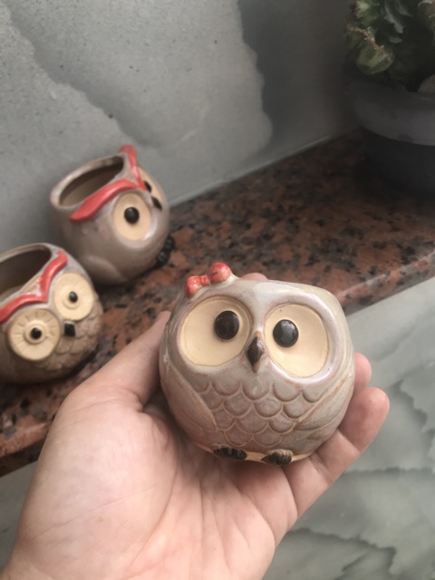 Chậu gốm hình cú mèo ngộ nghĩnh ,gồm 5 chậu biểu cảm khác nhauKích thước 7-8 cm
