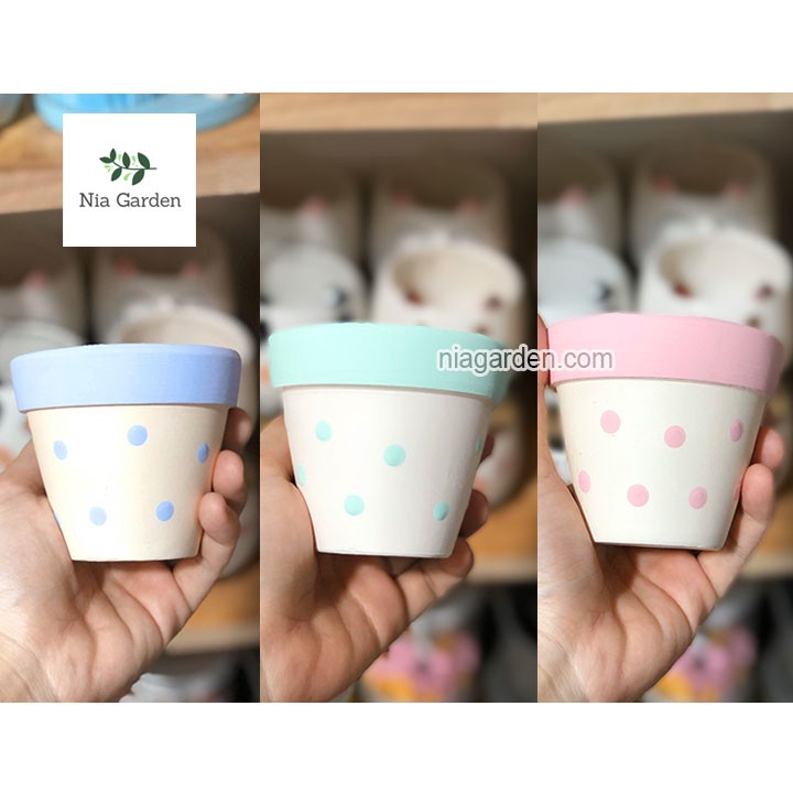 Nhà cửa & Đời sống > Làm vườn > Chậu cây || Chậu trồng cây đất nung size 7,5x7,5cm chấm bi Nia Garden N3Còn hàng