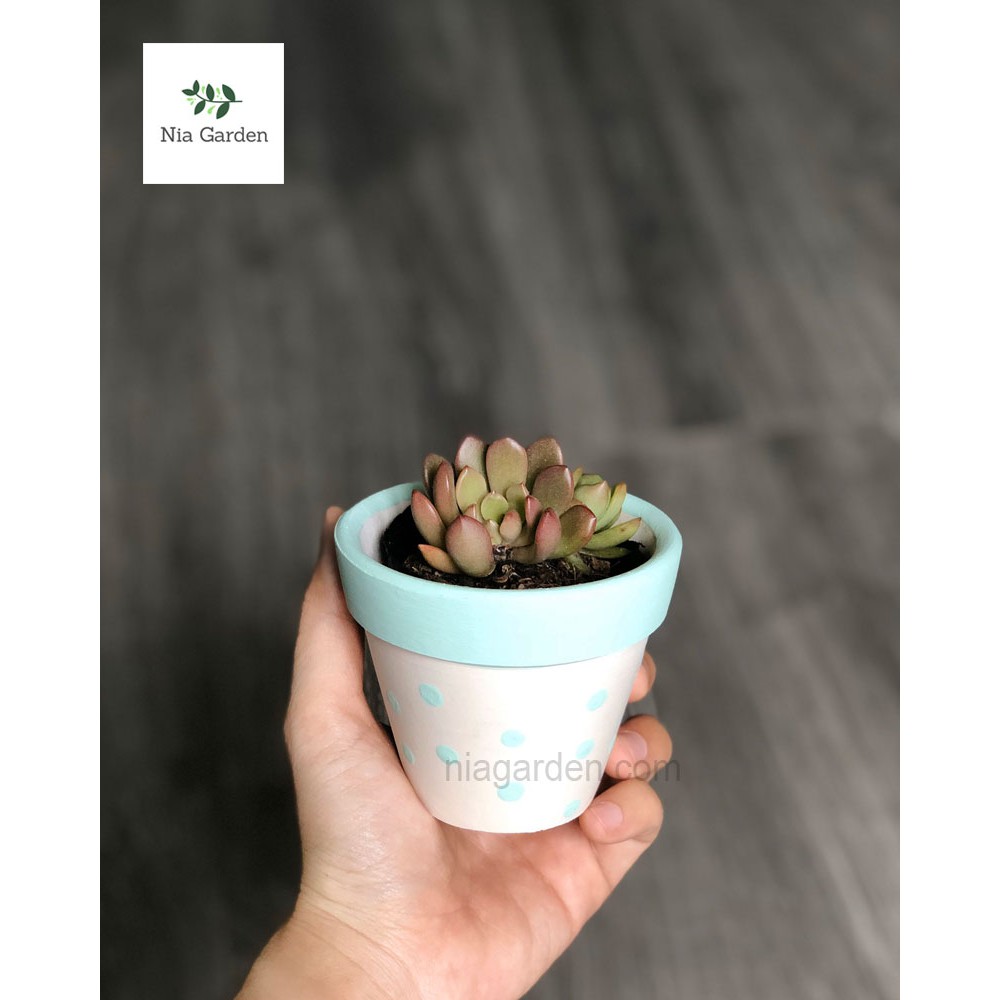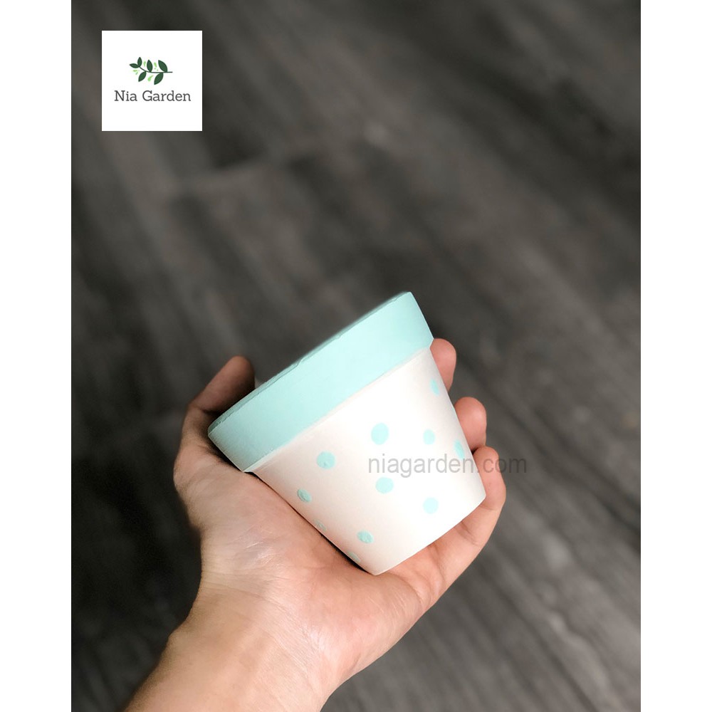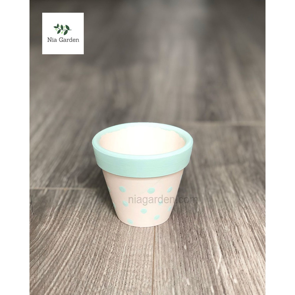Chậu trồng cây đất nung size 7,5x7,5cm chấm bi Nia Garden N3