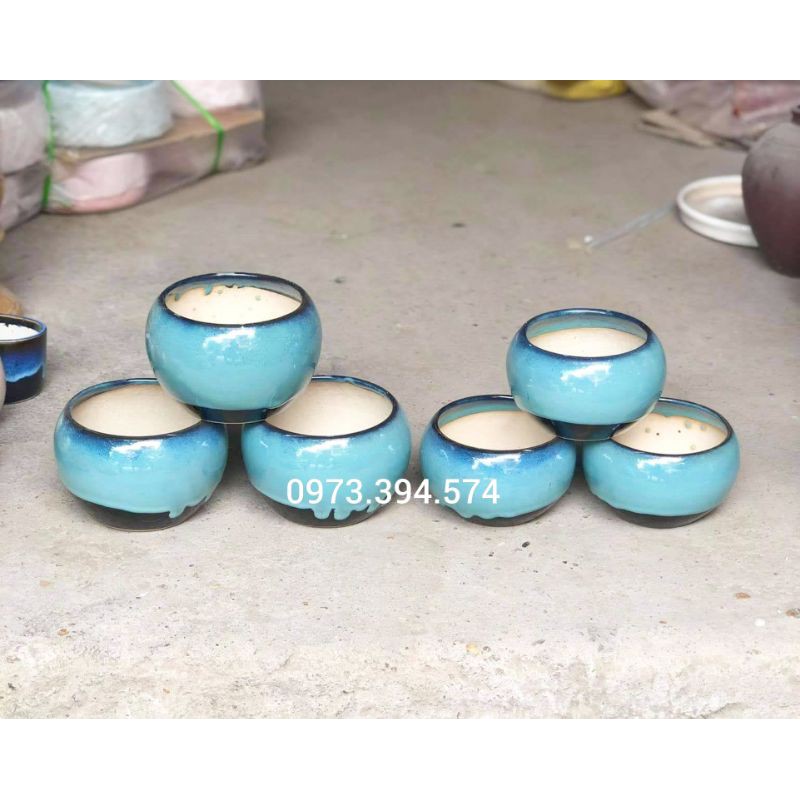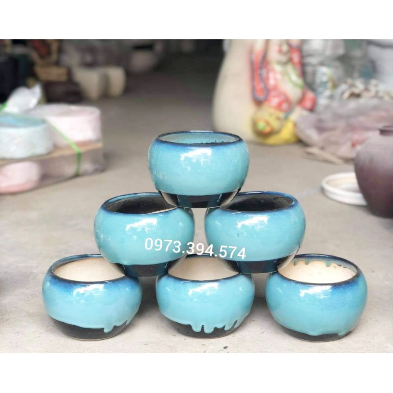 Chậu Trồng Cây Để Bàn, Cây Bon Size, Sen Đá, Xương Rồng (size 10cmx8cm)_ Loại Trong Men Chảy Siêu Sang