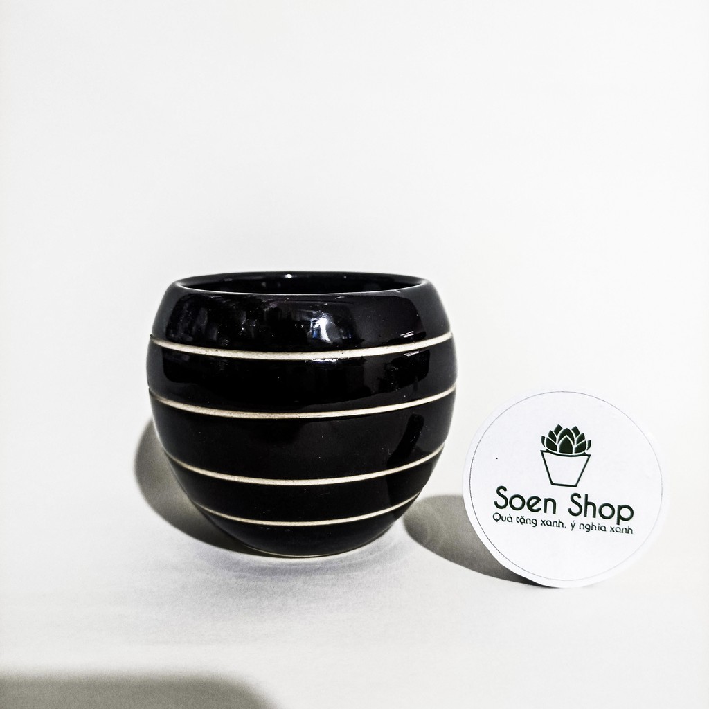 Chậu Trồng cây để bàn, cây kiểng mini, sen đá, xương rồng - Chậu Sứ Kẻ đen