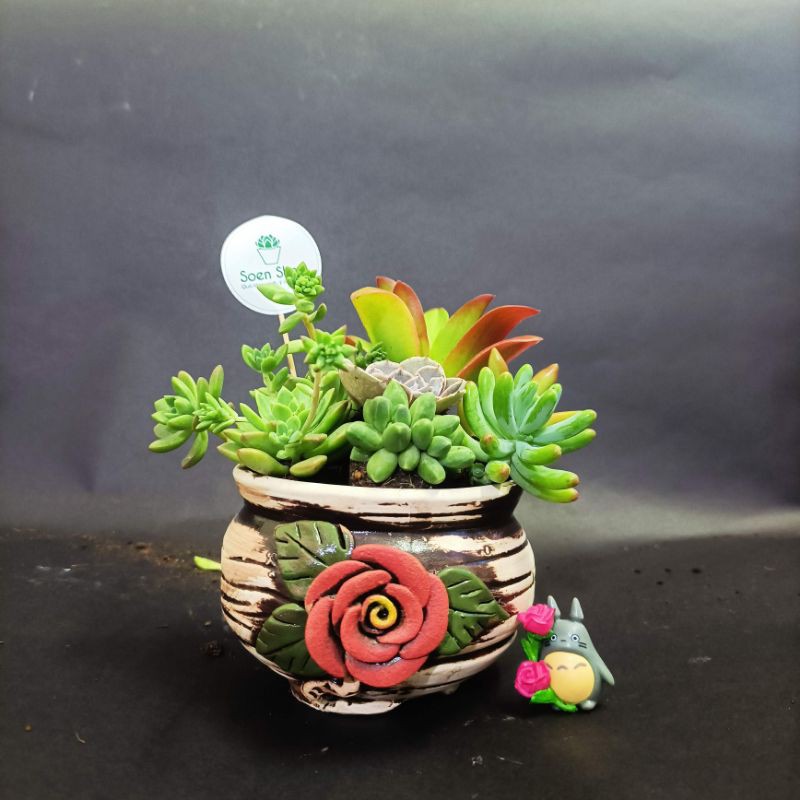 Nhà cửa & Đời sống > Làm vườn > Chậu cây || Chậu Trồng cây để bàn, cây kiểng mini, sen đá, xương rồng - Chậu Sứ Bát Tràng Xuất Hàn Đắp Hoa Nổi dáng trònCòn hàng
