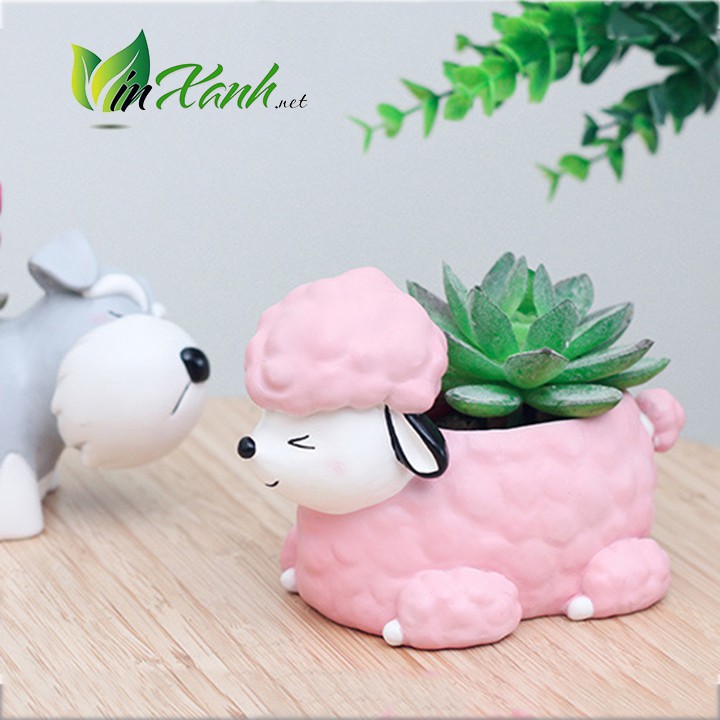 Chậu trồng cây để bàn Cừu hồng trang trí nhà cửa bàn học