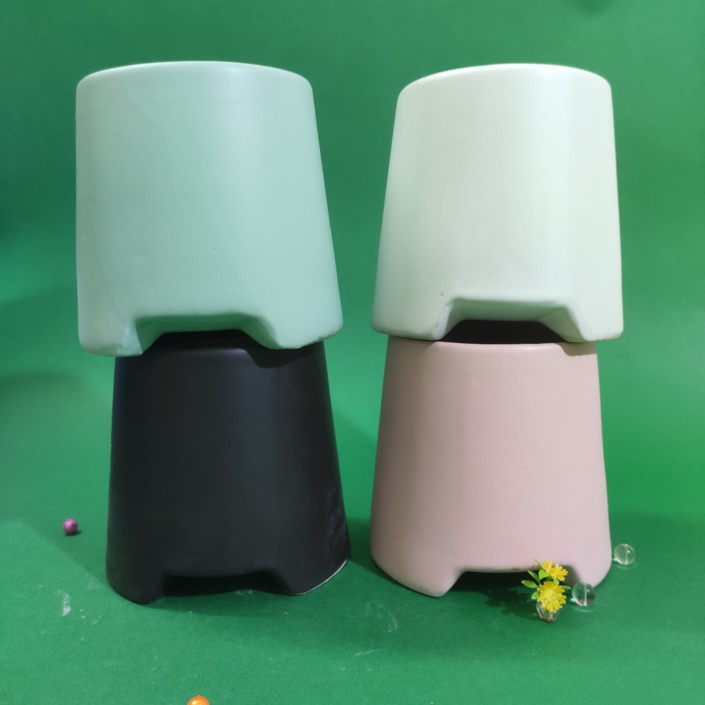 Chậu trồng cây để bàn, xương rồng, cẩm nhung ,gốm sứ Bát Tràng cao cấp - Chậu sứ trụ 3 chân cao