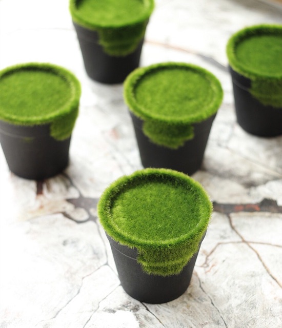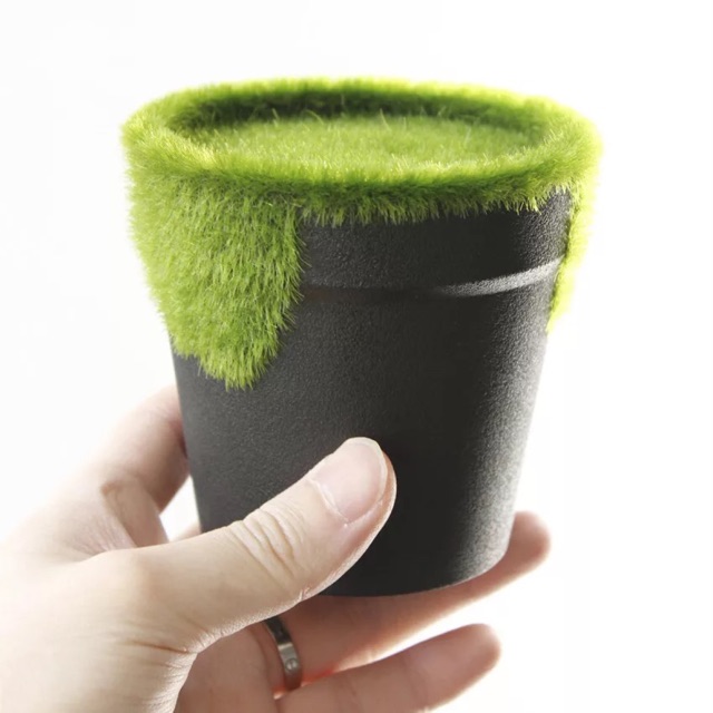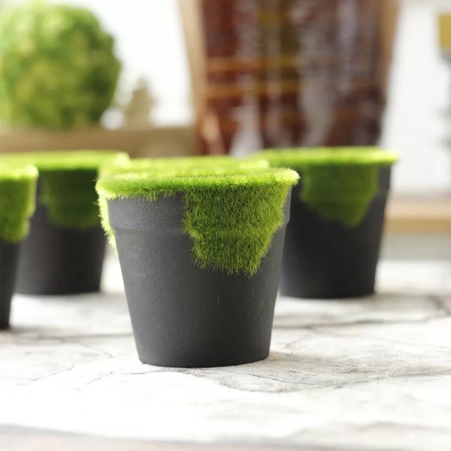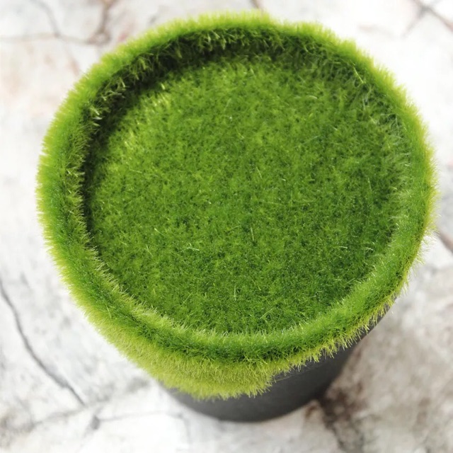 Chất liệu : chậu nhựa phủ cỏ nhung xanh. Phần lòng chậu có xốp để cắm cây giả