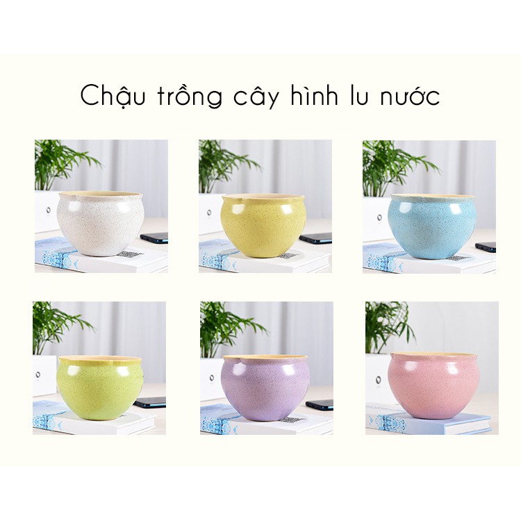 Chậu sứ hình lu nước có màu sắc nhã nhặn xinh đẹp, chất men mịn và bóng và chất sứ chậu rất chắc tay.