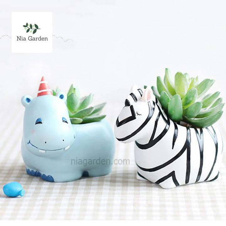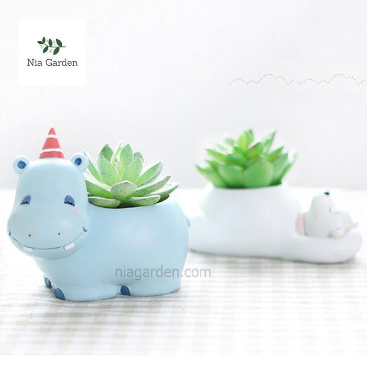 Chậu trồng cây hình thú hà mã xanh trồng sen đá mini xương rồng để bàn Nia Garden N4