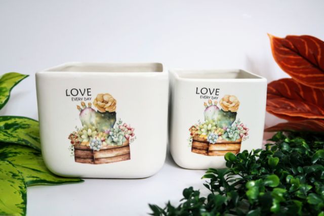 Nhà cửa & Đời sống > Làm vườn > Chậu cây || Chậu trồng cây hình vuông, có hình in đẹp, phong cách hiện đại , chậu sứ Bát Tràng cao cấpCòn hàng
