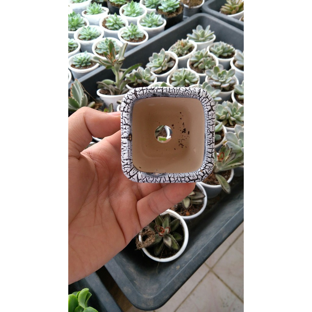 - Kích thước chậu: 6x6x6cm, miệng trong 4.5x4.5cm