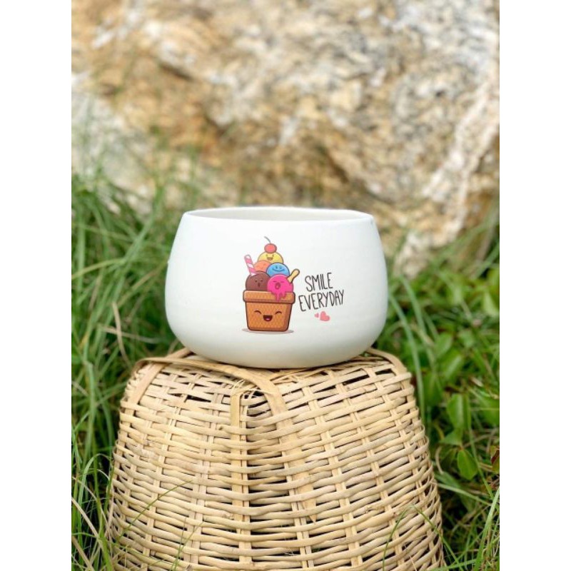 - Hình dáng: Chậu sứ tròn mẫu hạt dẻ