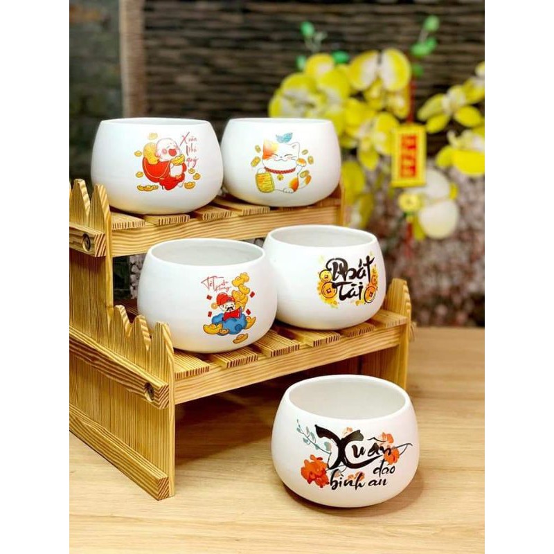 Chậu trồng cây Quất Tết, Đào Tết, Mai Tết để bàn men mát Bát Tràng [ VẼ THEO YÊU CẦU] - Chậu hạt dẻ nhiều mẫu