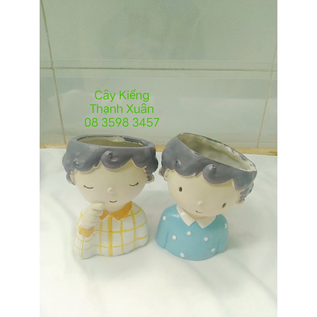 Chậu trồng cây sen đá xương rồng mini hình con trai, chậu nhựa composite dễ thương nhiều mẫu.